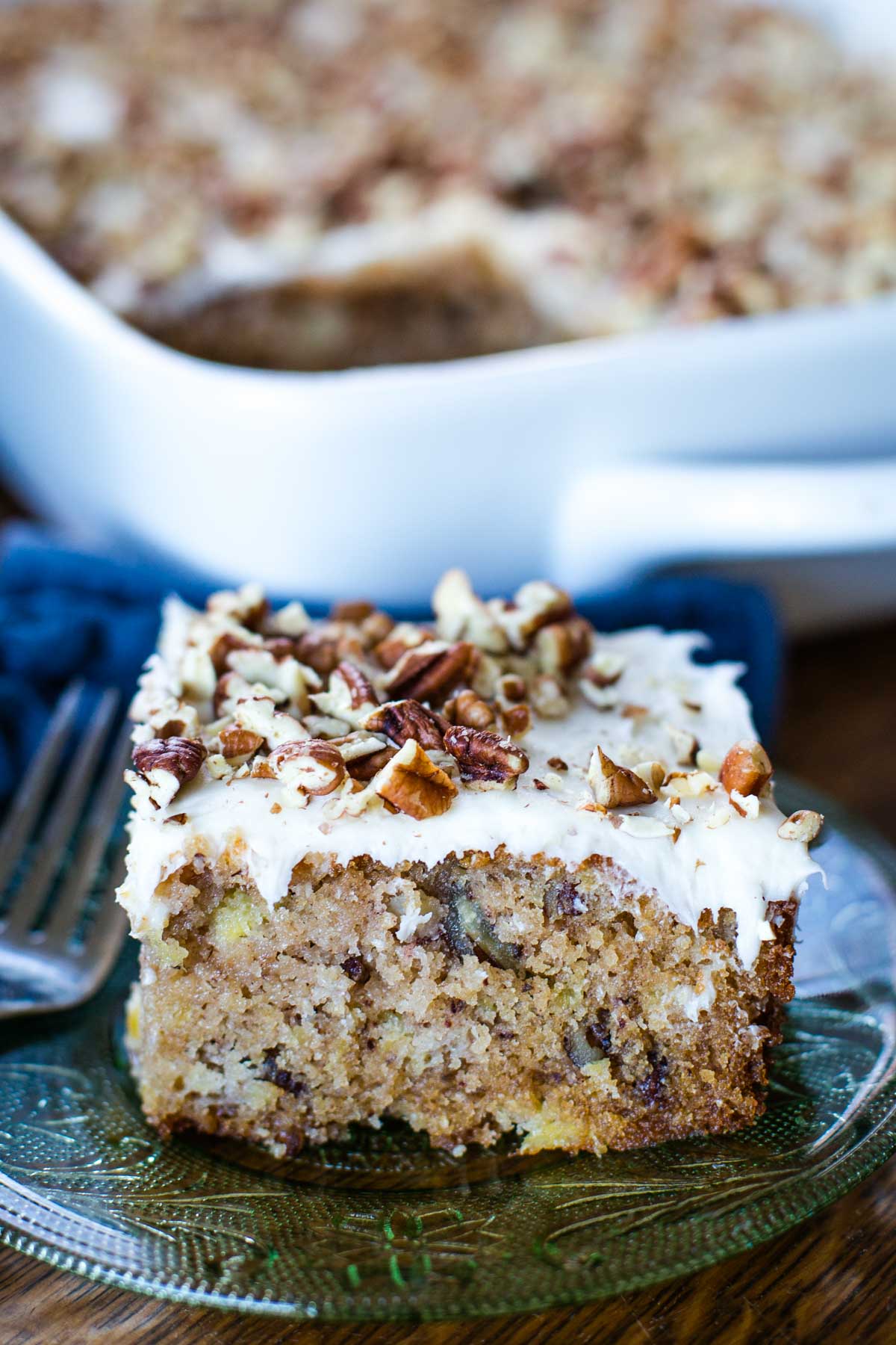 I love baking this carrot cake from scratch. It’s full of shredded carrots, warm spices, and topped with a pineapple cream cheese glaze that takes it to the next level.